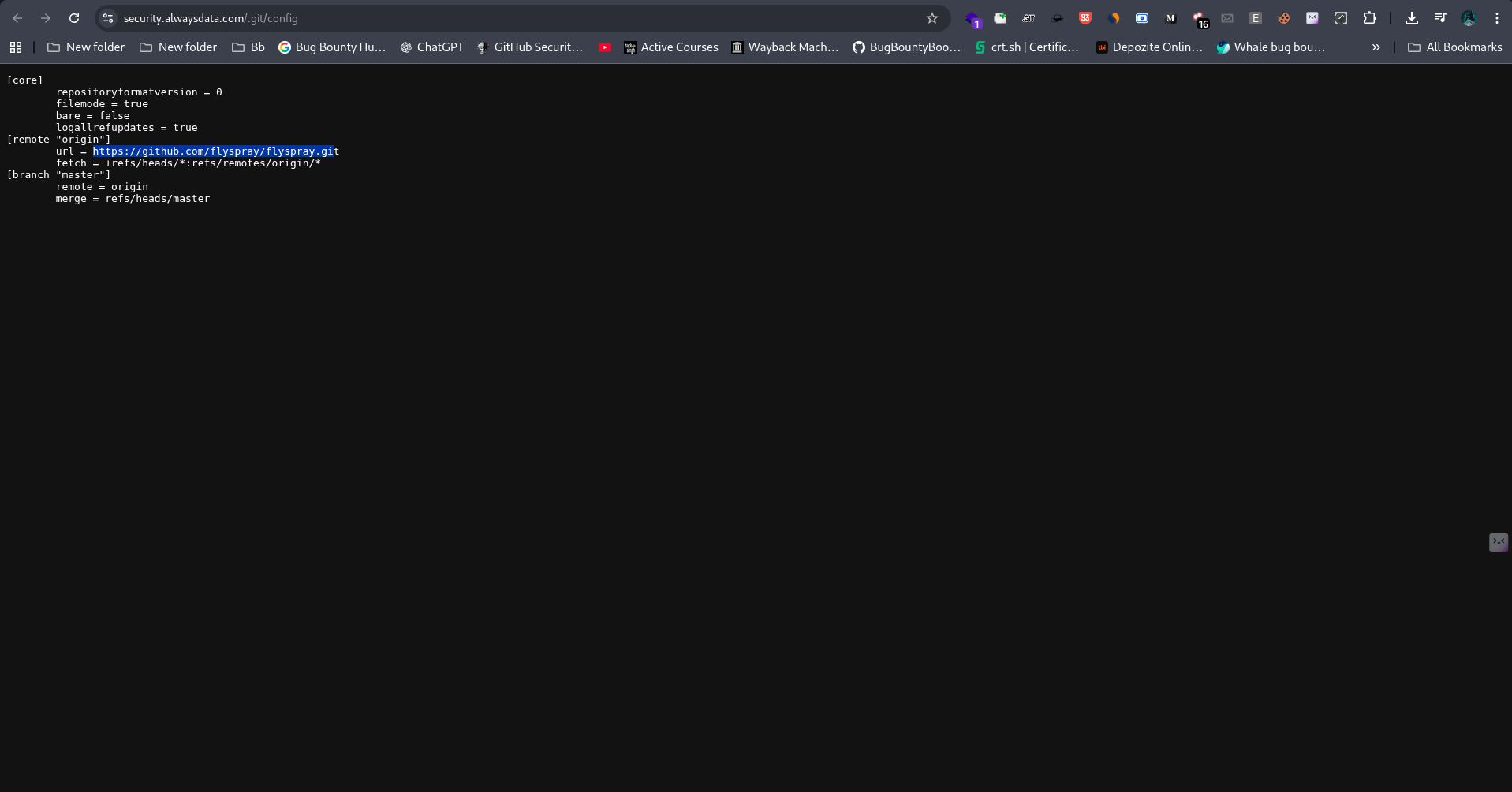 1. curl -i -H "X-Bug-Bounty: Hacker-sam123" https://security.alwaysdata.com/.git/HEAD 2. curl -i -H "X-Bug-Bounty: Hacker-sam123" https://security.alwaysdata.com/.git/config
