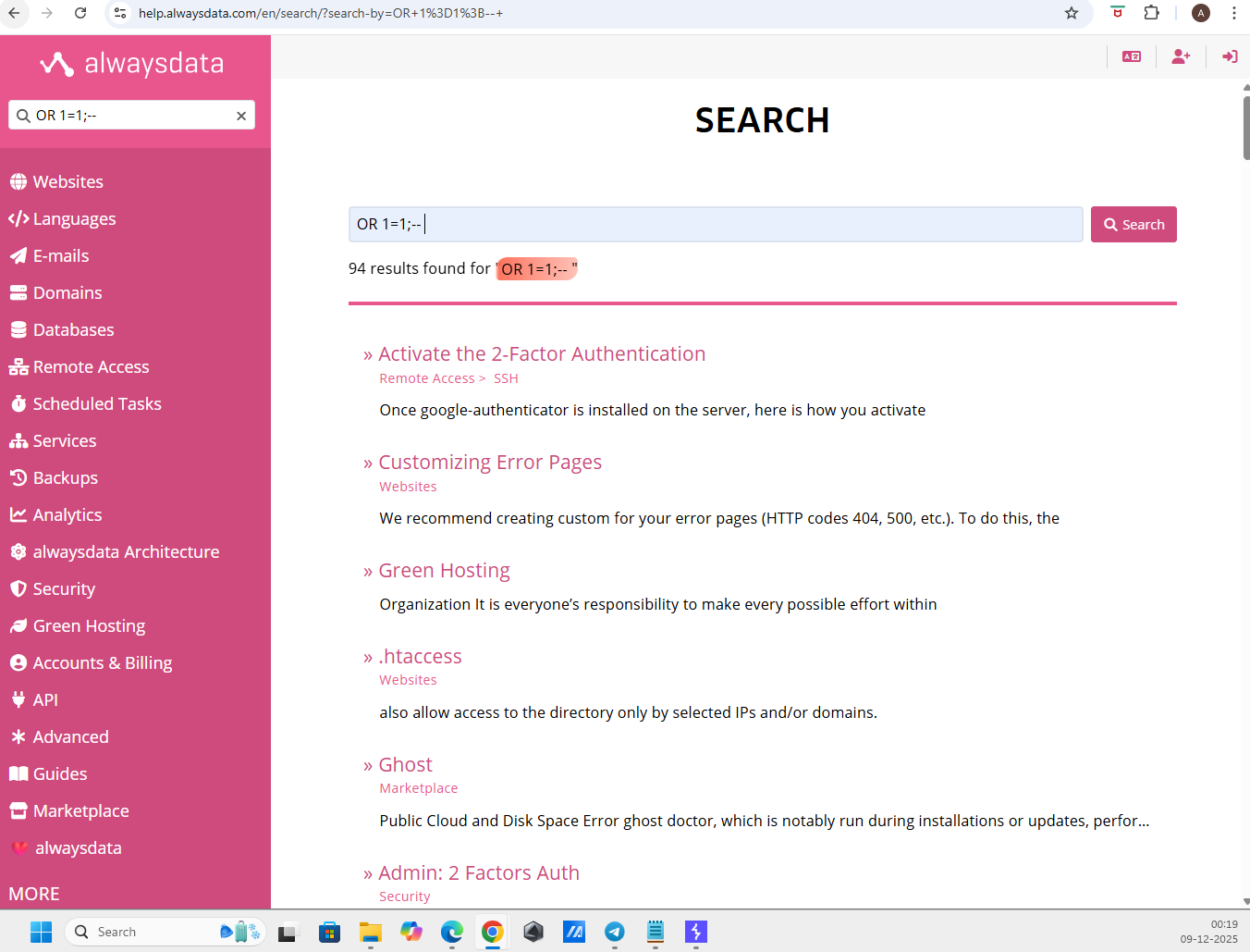 Target Application: https://help.alwaysdata.com/en/ (Search Function)