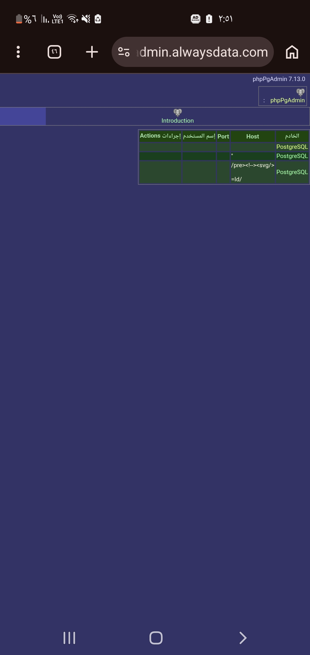 Hi security team , the subdomain phppgadmin.alwaysdata.com specifically this like 'https://phppgadmin.alwaysdata.com/phppgadmin/login.php?server='